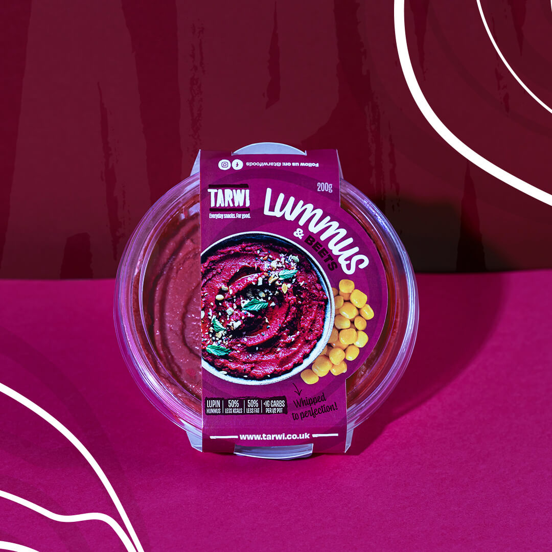 We start our journey with Lummus, a Lupin-based hummus. It is the traditional hummus recipe, where we swap chickpeas with lupin beans. This gives them a much smoother consistency with an exceptional nutritional profile, without sacrificing on flavour.