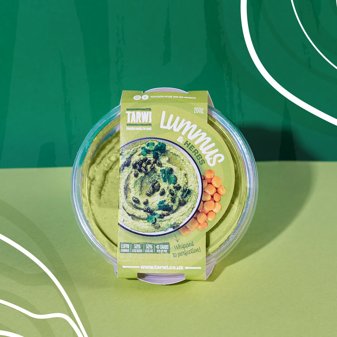 We start our journey with Lummus, a Lupin-based hummus. It is the traditional hummus recipe, where we swap chickpeas with lupin beans. This gives them a much smoother consistency with an exceptional nutritional profile, without sacrificing on flavour.