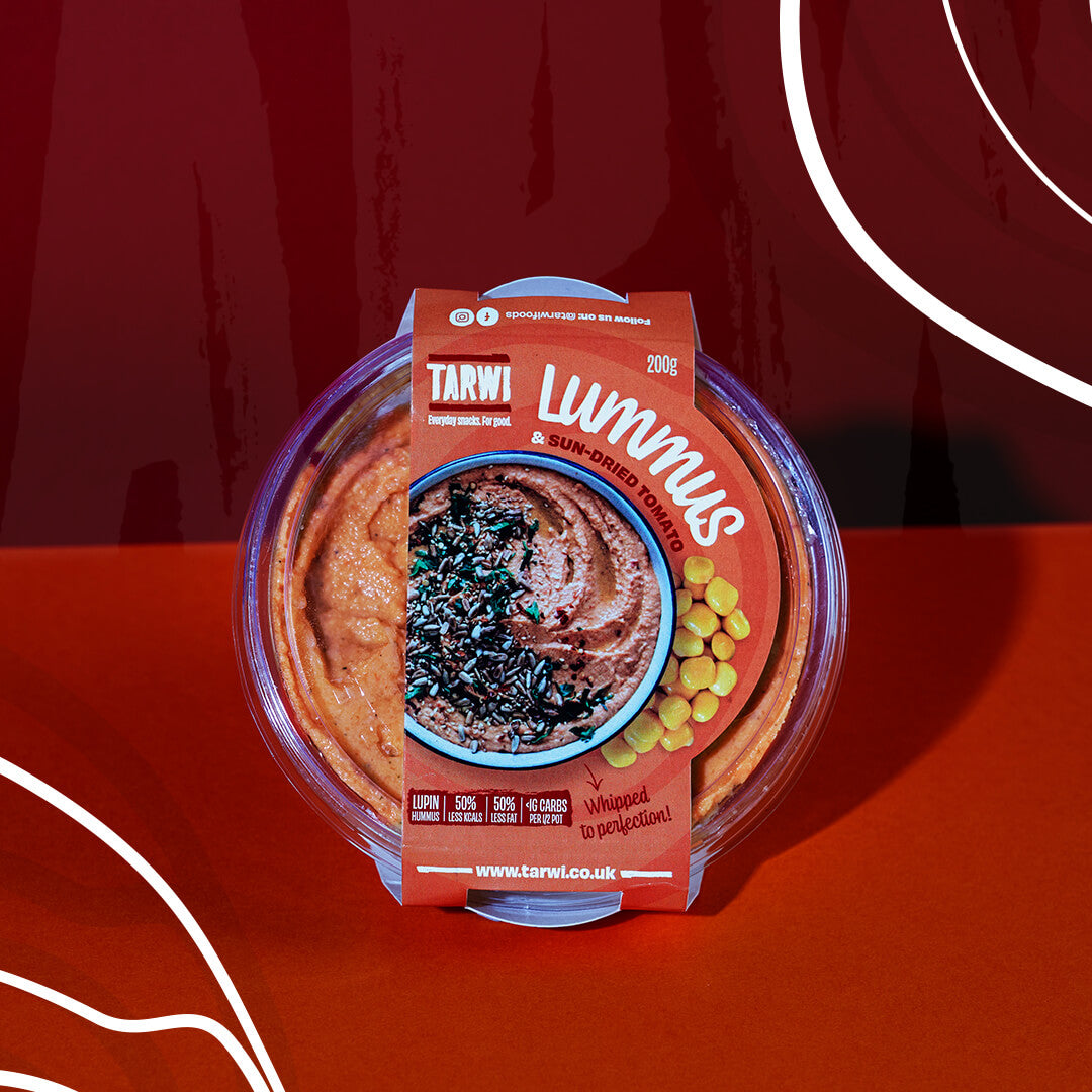 We start our journey with Lummus, a Lupin-based hummus. It is the traditional hummus recipe, where we swap chickpeas with lupin beans. This gives them a much smoother consistency with an exceptional nutritional profile, without sacrificing on flavour.