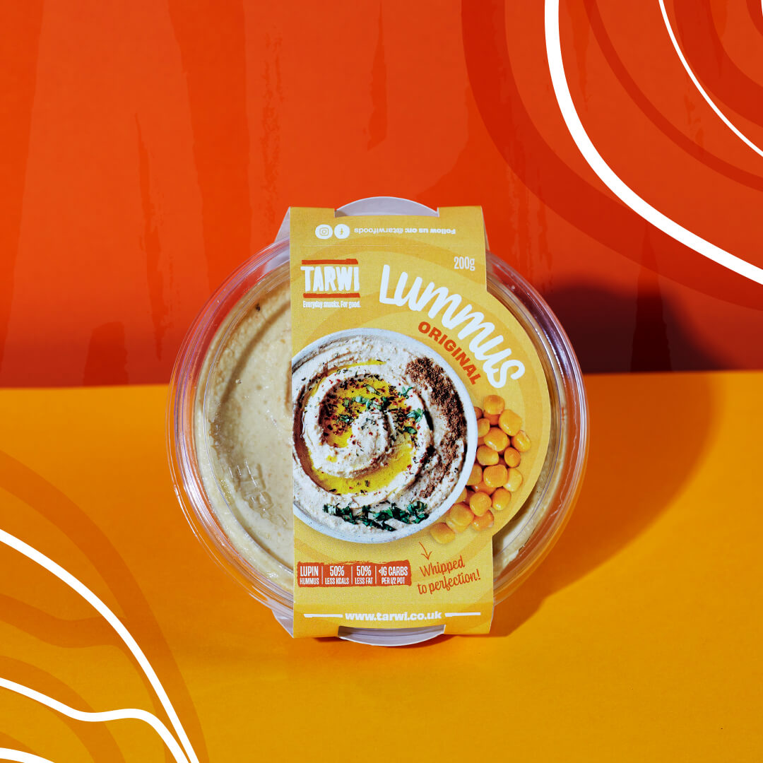 We start our journey with Lummus, a Lupin-based hummus. It is the traditional hummus recipe, where we swap chickpeas with lupin beans. This gives them a much smoother consistency with an exceptional nutritional profile, without sacrificing on flavour.
