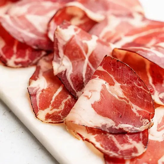 The coppa, or pork collar, is a cut synonymous with charcuterie the world over. Characterised by it’s natural golden ratio of lean muscle to fat (around 70:30) it has a deep, rich flavour and a wonderful texture.