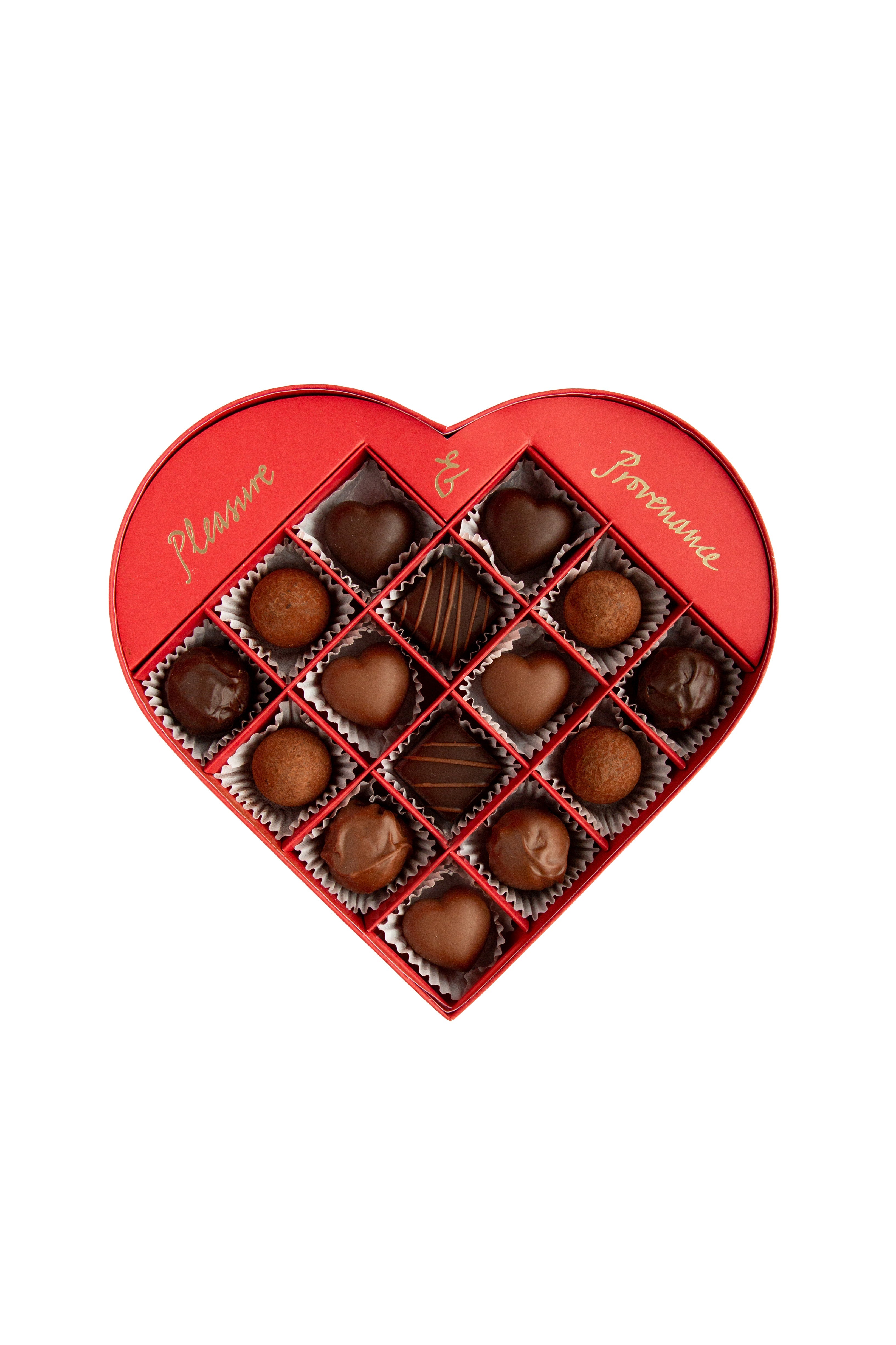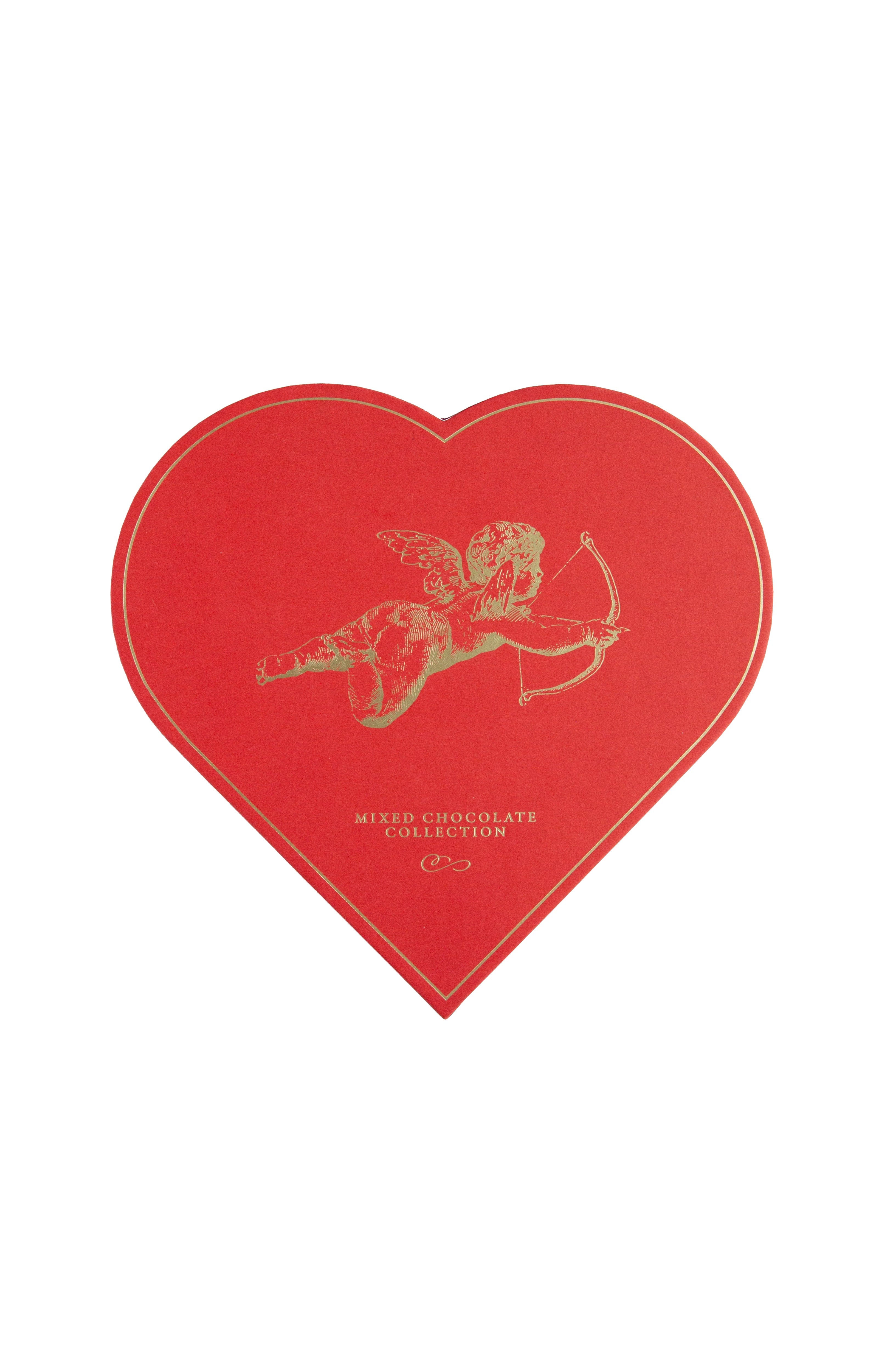 As he sends a flurry of amorous arrows into lonely hearts, red heart-shaped boxes appear for every couple, filled with a decadent selection of gourmet milk, dark and salted caramel truffles and ganaches in a heart-shaped gift box adorned - of course - with Cupid himself.