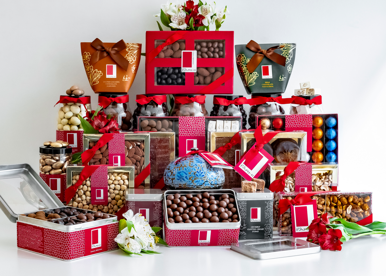 This impressive hamper is brimming with our most loved gifts ready to enjoy with your family and friends or that special someone. This lavish selection includes a small handmade bonbonniere, zesty Dark Chocolate Gingers, traditional almond Nougat, White Chocolate Raisins, Cocoa Dusted Pecans, and more. Perfect for wedding presents, corporate gifting, anniversary and birthday gifts, it is a gift with which leaves a ‘sweet’ impression.