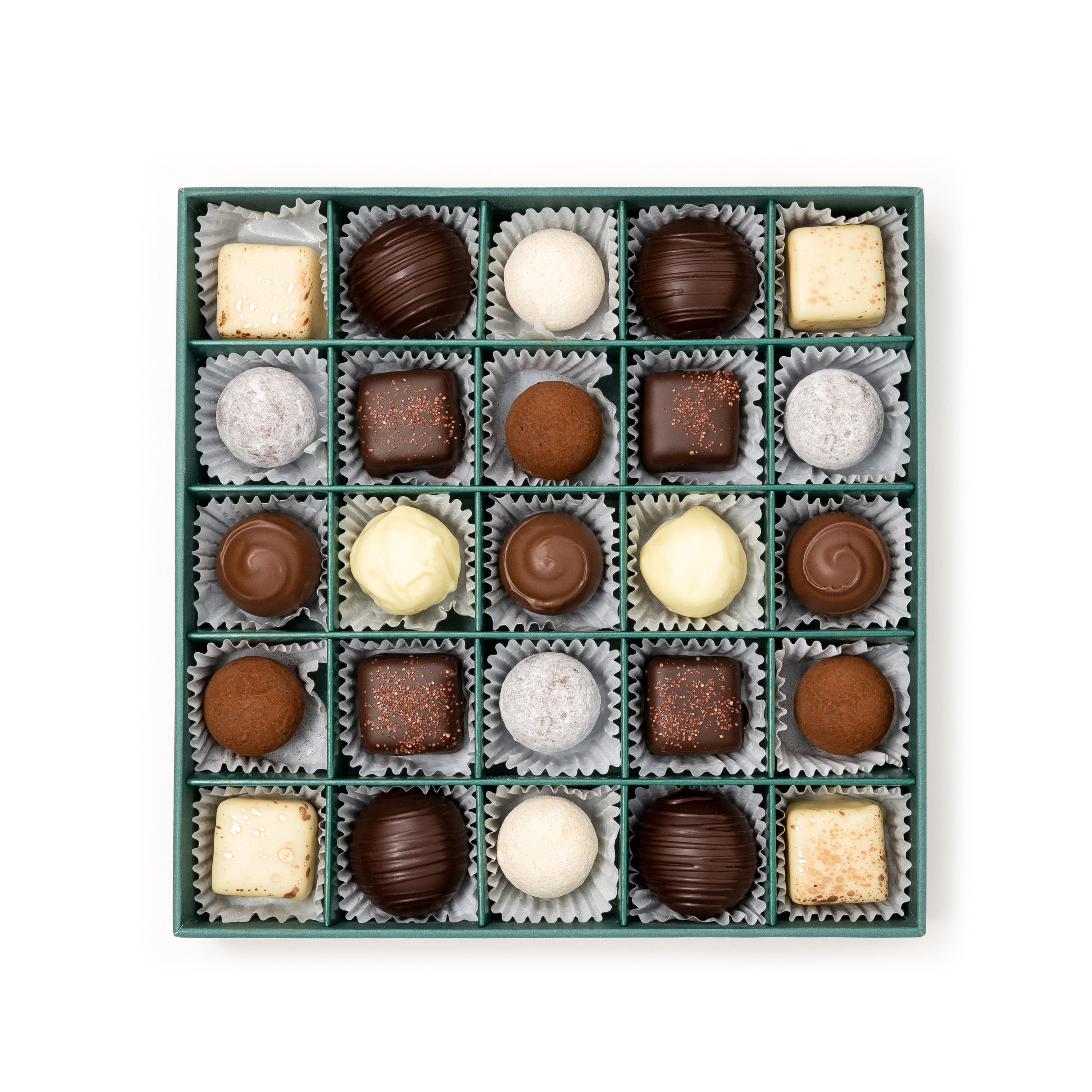 All the truffles and ganaches are made in our kitchen using our Signature Single Origin cacao from the Ivory Coast and transformed by Domori. The cacao is organically grown within a single cooperative, and we pay above market price for it. The flavour profiles of the heritage cacao are preserved, and paired with the finest ingredients to create the most exquisite ganaches and truffles.