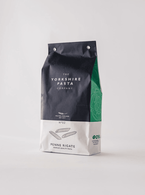 Penne Rigate is perfect for baked dishes and is renowned for its flavour, created through slow overnight drying at low temperatures, using locally-milled British wheat flour and bronze dies. Crafted using artisan techniques and a "family secret" blend of wheat flours, this sustainable, plastic-free pasta is packed in 100% recyclable paper bags and produced with solar power.