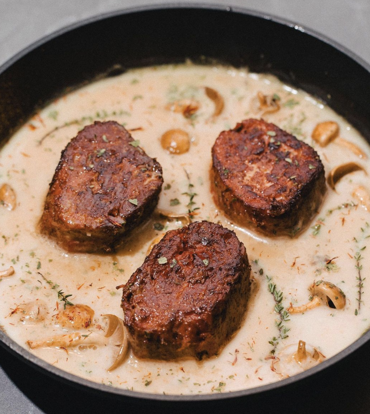 With thousands of fibres of plant-based protein and ribbons of natural fat, Marbles’ meats have a ‘whole-muscle’ texture that gives you the satisfying tenderness, bite, and buttery mouthfeel you expect from a whole cut of meat. It’s easy to cook on the pan. It forms a golden-brown crust that provides a pleasant outer crisp and keeps the centre soft and juicy. The taste is deeply umami and meaty, without any of the aftertaste you get from other plant-based meats.