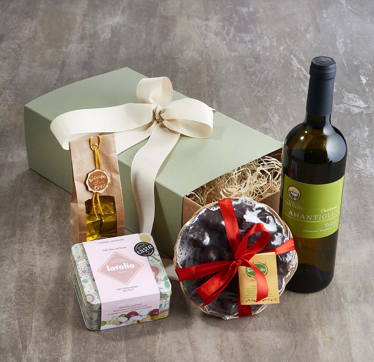 Tell them you love them with this indulgent gift box! If you are looking for something a little different and a little luxurious this is the perfect gift that is sure to please. Our Chardonnay is organic (less likely to leave your recipient with a headache!) and our artisanal chocolates and confectionary taste amazing and are all hand made with natural Italian ingredients.