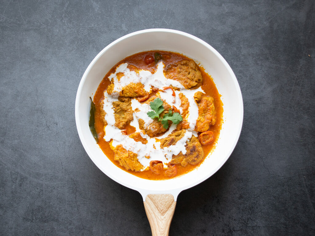Plant-based mini fillets: Indian Tikka Masala flavour. This was inspired by one of our founders who grew up in India.