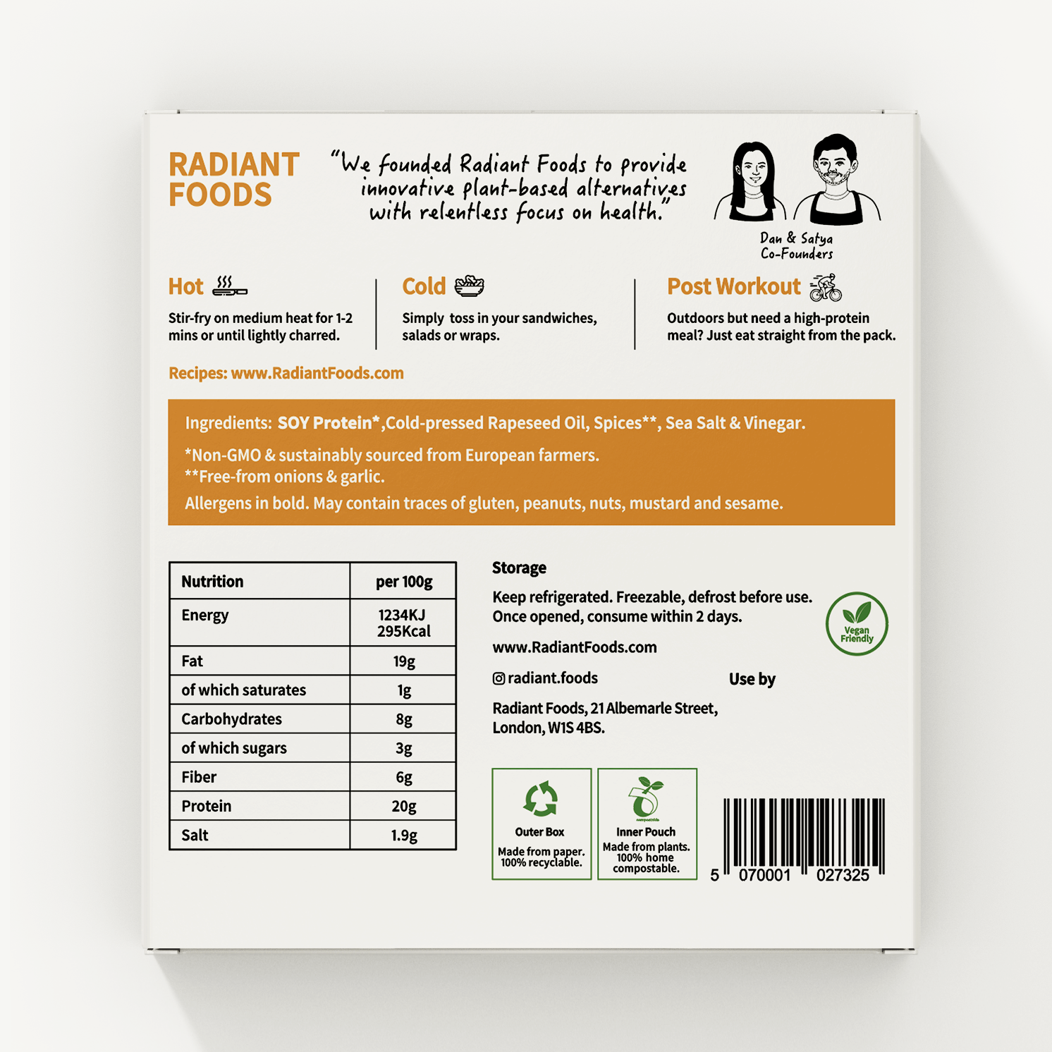 Ingredients: Soy protein*, Cold-pressed Rapeseed Oil, Spices**, Sea Salt & Vinegar.