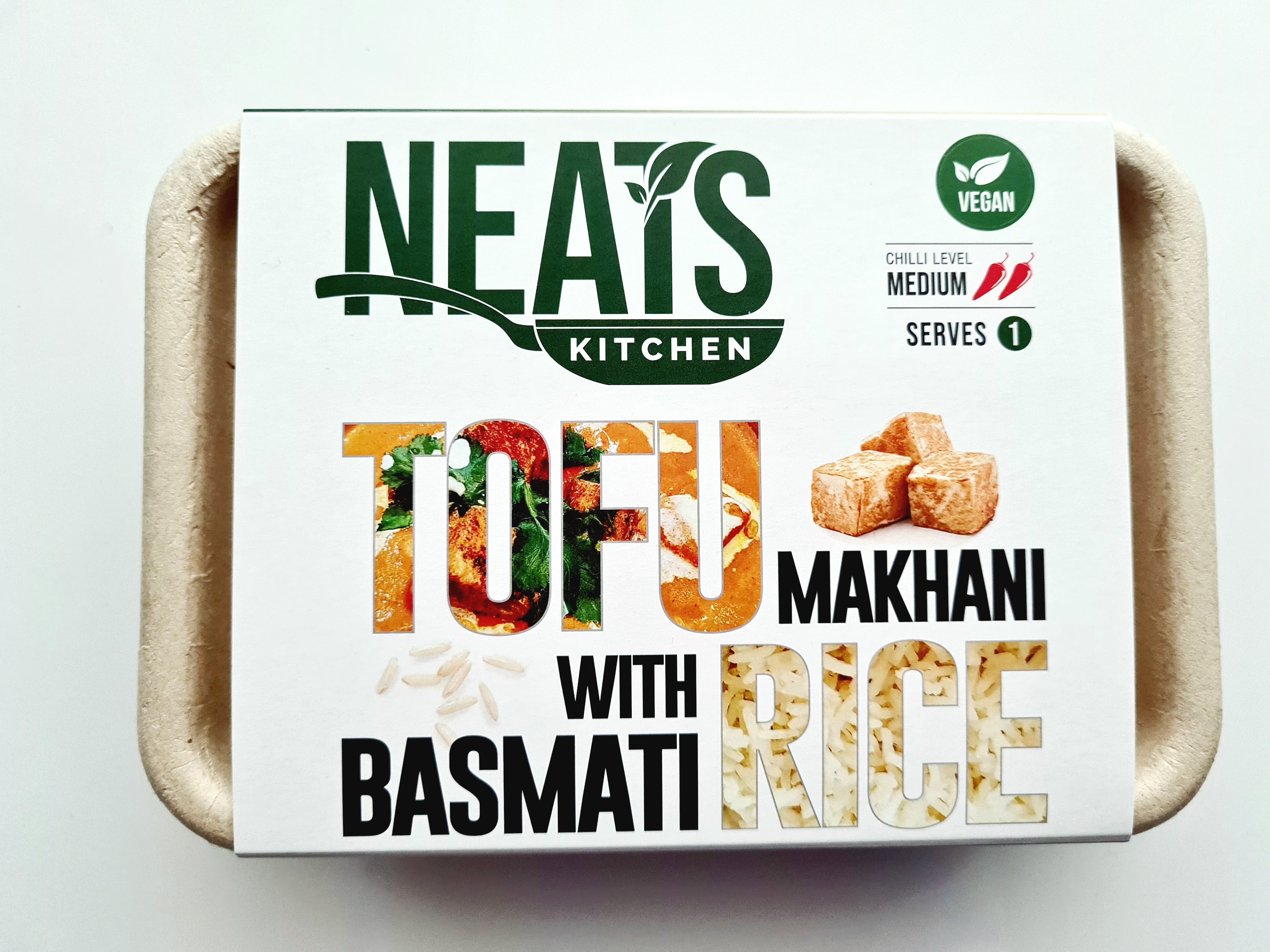 Water, Tomatoes (citric acid), Tofu firm (Soyabeans, water, calcium sulphate), basmati rice, onion, vegan butter (plant oils, water, salt, sunflower lecithin, faba bean protein, natural flavourings, vitamins a&d), coconut milk (coconut extract, guar gum), rapeseed oil, ginger, garlic, spices mix (beetroot extract, black pepper, onion powder, cinnamon, garlic powder, nutmeg, clove, paprika, red iron oxide, lemon oil, bay, citric acid, silicon dioxide, Mustard, Celery), star aniseed, pimento, black cardamom, bay leaves, cloves, ground coriander, salt, coriander leaves, cumin seeds, flaxseed, chilli powder, cardamom green, fenugreek leaves, turmeric.