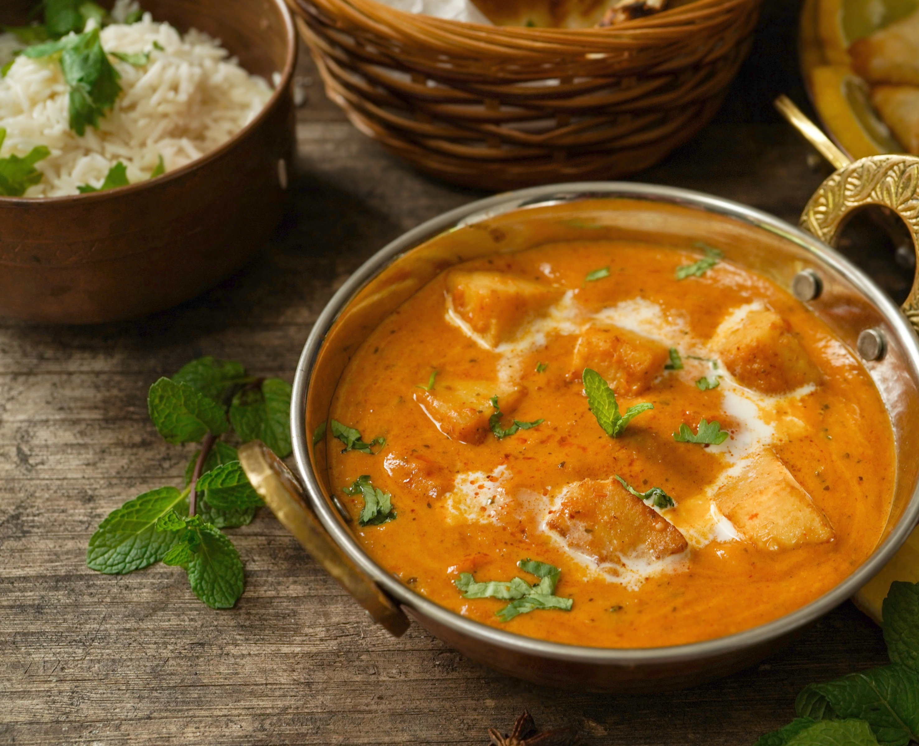Makhani was originated in Northern India, and this luscious tomato-based gravy, is slow-cooked and finished with dairy-free butter and cream. Addition of tofu, gives a great plant-based alternative. Served with basmati rice.