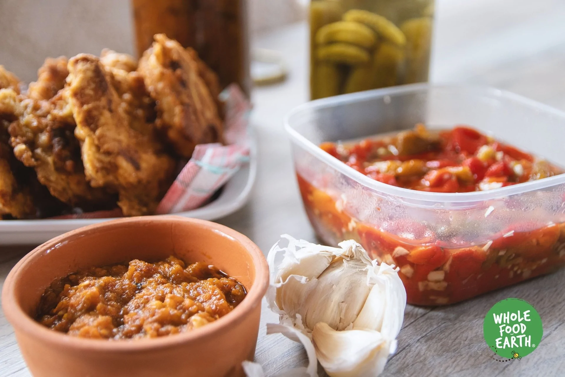 Tempeh - an Indonesian speciality typically made by cooking and dehulling soya beans and forming a textured, solid cake.
