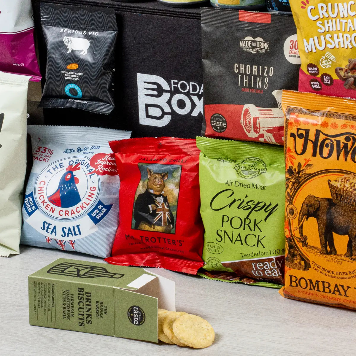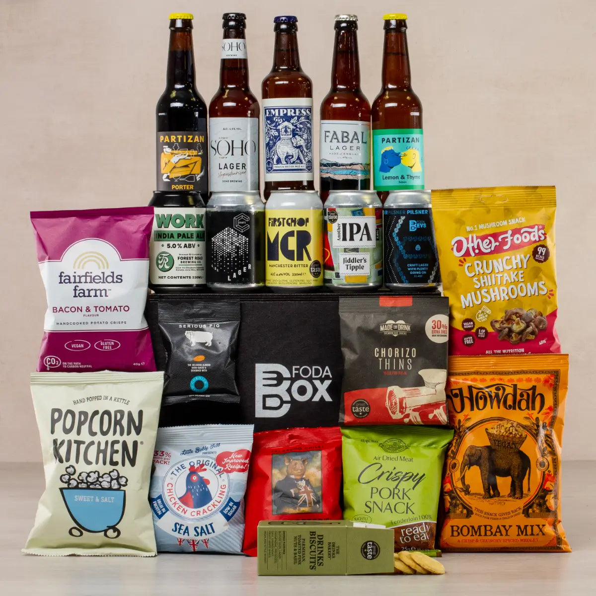 10 x Ultimate Beer Snacks. This will typically include crisps, bar snacks, popcorn, crackling, salami chips, nuts, pitta chips and more - from brands such as Fairfield Crisps, Howdah Bombay Mix, Popcorn Kitchen, Made for Drink, Serious Pig and Soffles.