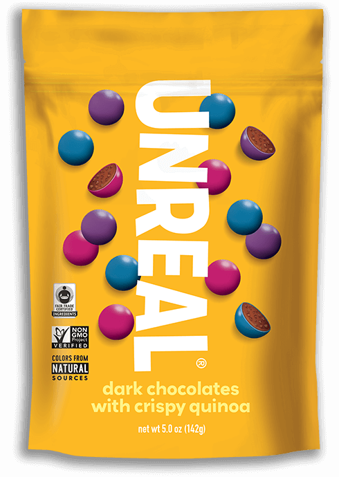 Crispy quinoa covered in smooth dark chocolate! Unreal Dark Chocolate Crispy Quinoa Gems uniquely blend Fair Trade Certified vegan dark chocolate with the crunchy crisp of quinoa for a delicious snacking combination that's going to become your new (guilt-free) addiction. Made with non-GMO project verified ingredients that are naturally colored with vegetable extracts and nothing artificial the tas...