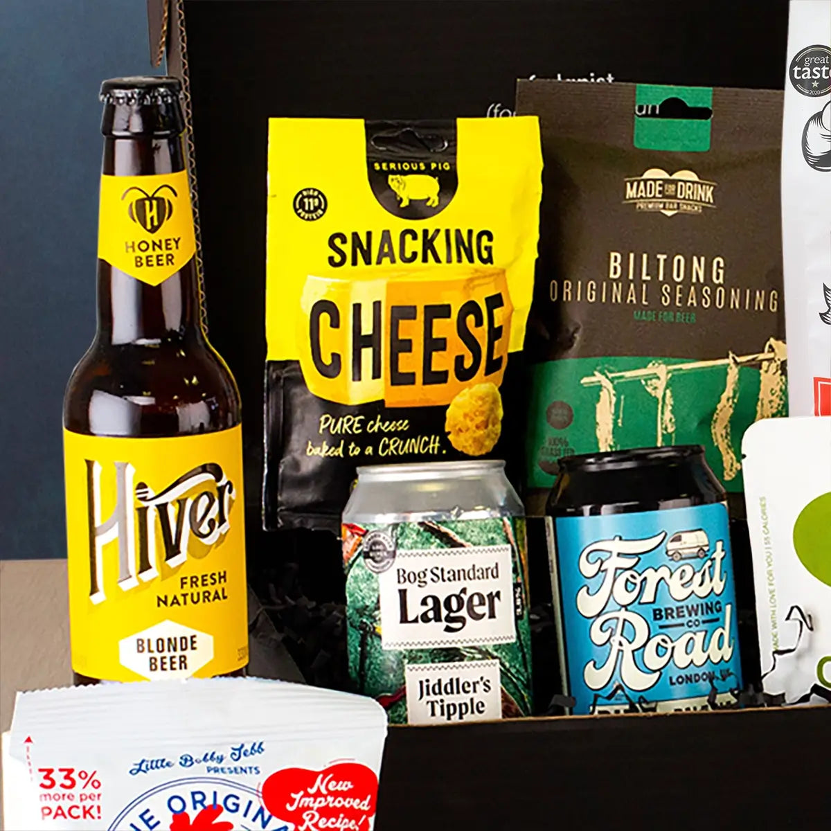 Experience the perfect blend of craft beer and gourmet snacks this Valentine's Day with our Man Box Beer and Snack Hamper. Thoughtfully curated to delight your loved one, this hamper brings the cozy pub atmosphere right to their doorstep.