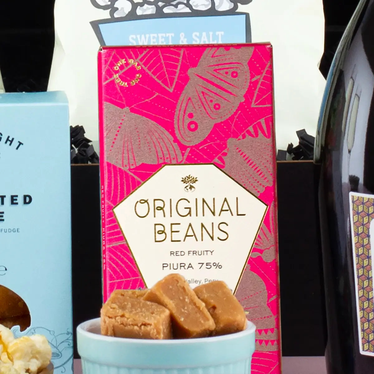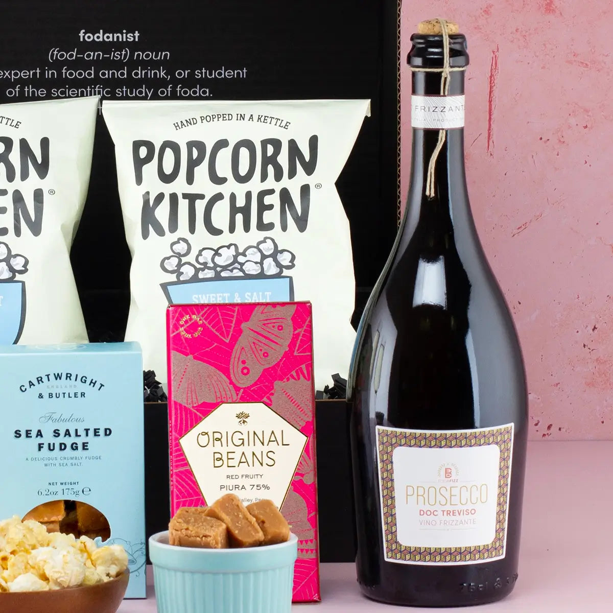 Sometimes, we all need a bit of sweetness and fizz. Our Prosecco, Popcorn & Fudge Hamper is the perfect expression of indulgence, combining sparkling prosecco with rich artisan chocolates, buttery fudge, and sweet and salty popcorn. This thoughtfully curated hamper makes an exceptional gift for any special occasion, whether it's a birthday, anniversary, Christmas, or simply to show someone you care.