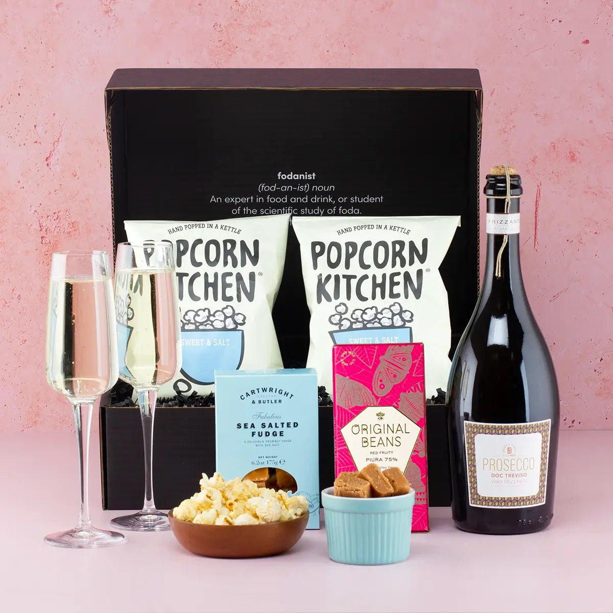 Create a romantic evening with a glass of prosecco and gourmet chocolates, or enjoy a cozy movie night with sweet and salty popcorn. This hamper offers versatile ways to indulge and celebrate.