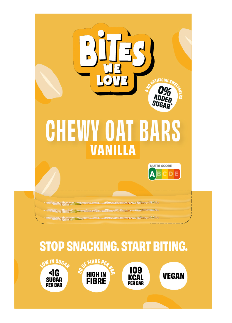 Our Vanilla Chewy Oat Bar is a tasty alternative to sugary snacks, made from whole grain oats, brown rice, tapioca and chicory root fibres, sunflower and pumpkin seeds, quinoa, and sunflower paste. It has 0% added sugar, contains no artificial sweeteners and has a calorie count of just 117kCal per 30g bar. It's also high in fibre and naturally low in sugar (<1g per 30g bar). Perfect for vanilla lo...