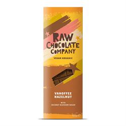 Organic Raw Cacao Confection with Hazelnut, Vanilla and Lucuma. Melt into our creamy Vanoffee with a generously smooshed with hazelnuts. Enhanced with a touch of sea salt