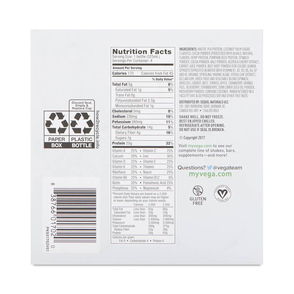 The real plant protein, real fuel you love now has a new bottle. Grab nutritional building blocks you can take on-the-go with ready-to-drink Vega Protein Nutrition Shake. – New convenient bottle format – 20 grams protein – Veggies & greens, Vitamins & minerals – 3-4 grams fiber, 1 gram Omega-3 ALA – Non-GMO Project verified, gluten-free, certified vegan – Grab nutritional building blocks you can t...