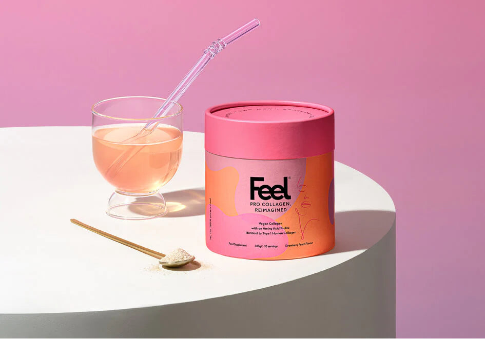 Feel's Strawberry and Peach Vegan Collagen is a world 1st, designed to transform your skin by providing anti-wrinkle support, as well as increasing skin elasticity while supporting hair and nail growth.