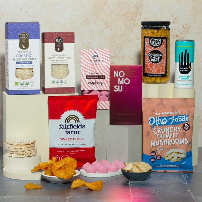 The name says it all, this hamper is overflowing with the finest vegan food and drink in the market. Decadent sparkling soft drinks, chocolate, crunchy mushroom crisps and Fairfields Farm Crisps but a few of the incredible hand-picked goodies you'll find inside this foodie box.