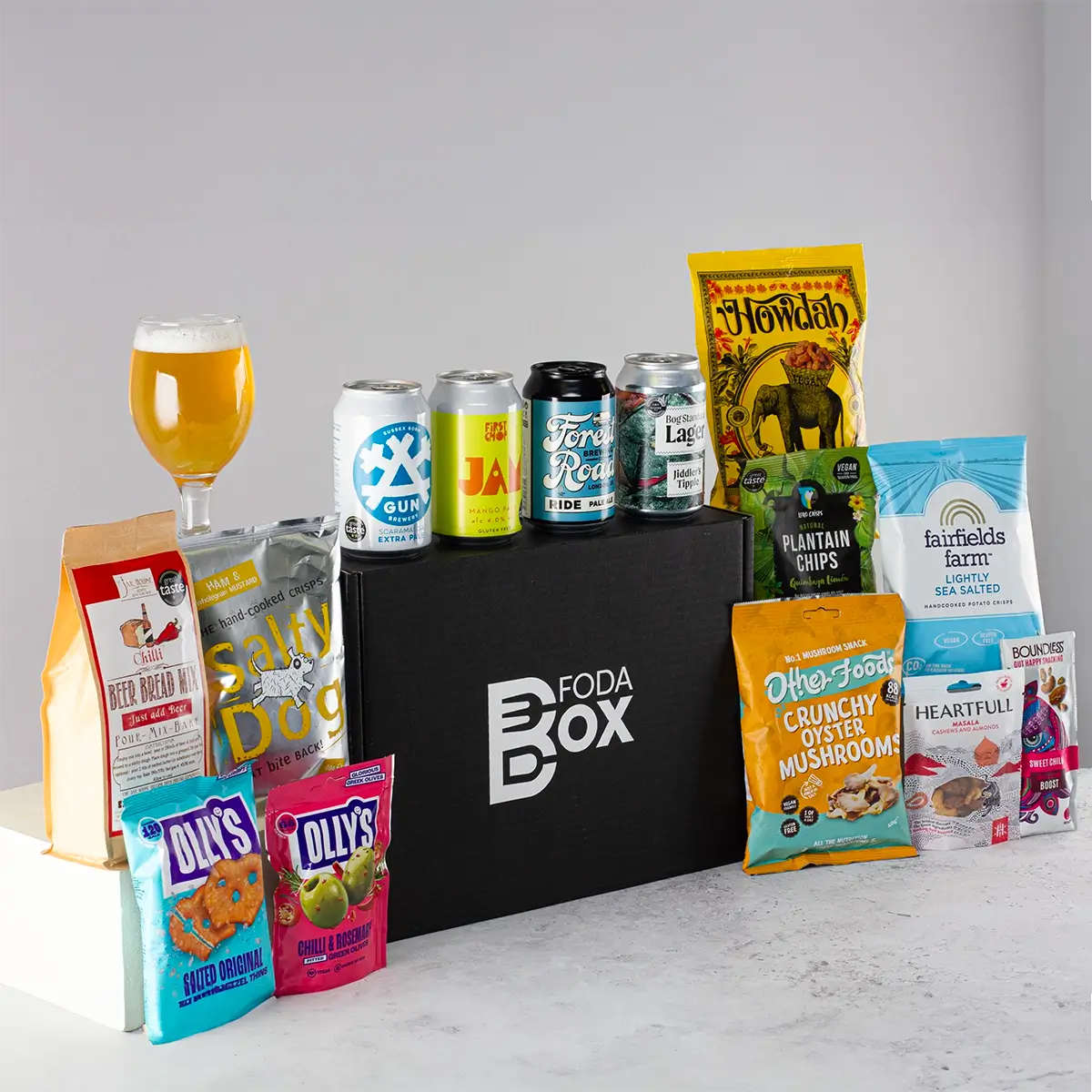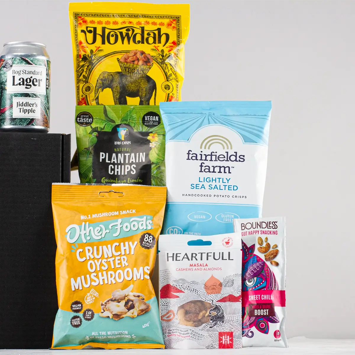 This vegan beer gift set celebrates ethical indulgence and inventive flavours that truly distinguish it from the rest. Designed for those who value premium, plant-based delights, this vegan beer hamper brings together four artisan vegan craft beers alongside a selection of crunchy, all-natural nibbles, all presented in an elegantly designed box. Each sip and bite in this vegan beer box has been carefully considered—from the tangy, crisp notes of the Toast Session IPA to the smooth, refreshing character of the Forest Road Ride Pale Ale, with two additional handpicked brews that complete the experience. Tailored for the modern vegan man, the assortment offers not only an exploration of distinctive taste combinations but also the reassurance of ethically sourced ingredients and gluten‐free options. Every component has been selected to elevate any occasion be it a birthday, anniversary, or a considerate gesture for someone who embraces a plant‐based lifestyle. The craft beers, with their rich and complex profiles, pair beautifully with the bold flavours of 10 crunchy vegan snacks including chilli and lime cashews and plantain crisps. This dynamic fusion creates a playful yet refined tasting journey, delivering a gift that surprises and delights from the very first reveal. The hamper’s environmentally friendly presentation and ready-to-gift packaging make it an outstanding choice for those seeking a memorable and guilt‐free treat. Embark on this gourmet adventure if you’re looking for a unique way to indulge yourself or surprise a loved one with a versatile vegan beer gift set that redefines what premium vegan gifts for him should be.