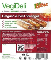 These tasty veggie sausages are a sausage-lover's dream. Enriched with oregano, basil, marjoram and rosemary, they're great for breakfast and BBQs. Served with creamy mash, these delicious meatless sausages make a wonderful midweek supper dish too. Vegetarian and vegan friendly. Kosher and halal certified and cholesterol free. .