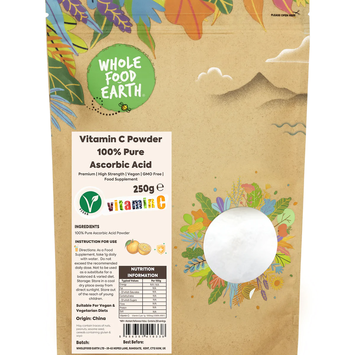 Pure Vitamin C Powder is known to support the normal function of the immune system. Our Pure Vitamin C Powder comes with no fillers, flow agents, or binders and is a pharmaceutical grade, which makes it high quality, fast dissolving, effective & great alternative to tablets.