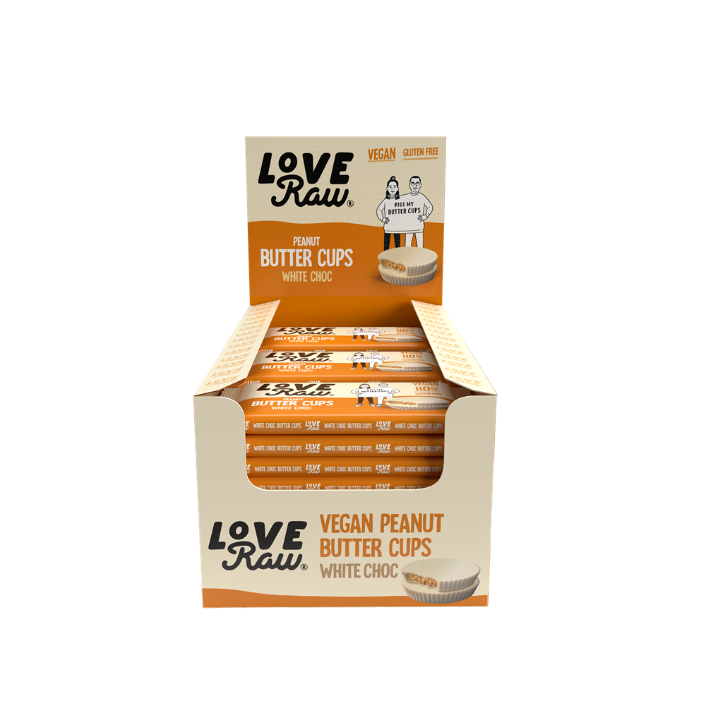 2 x melt in your mouth vegan white choc cups filled with a gooey peanut butter c...