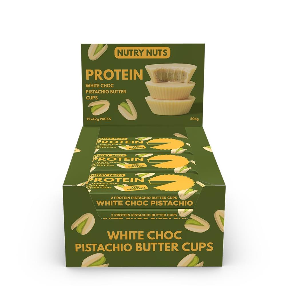 Introducing the world's first Protein White Chocolate Pistachio Butter Cups! These little cups of joy are packed with a whopping 11g of protein, making them the perfect snack for those who want to stay fit without sacrificing taste. But wait, there's more! We've also reduced the sugar content, so you can indulge guilt-free. And let's talk about that taste - it's unreal! The creamy white chocolate ...