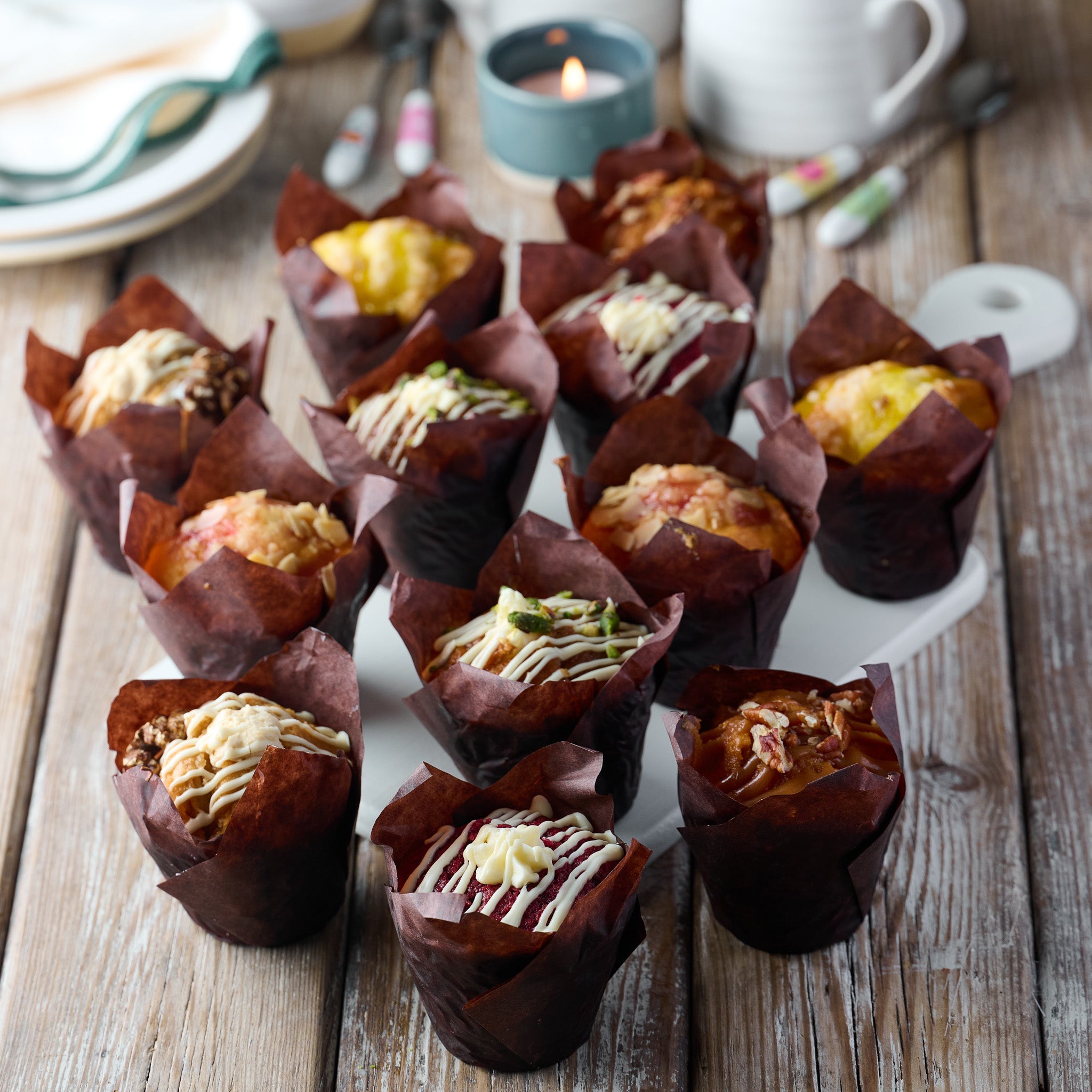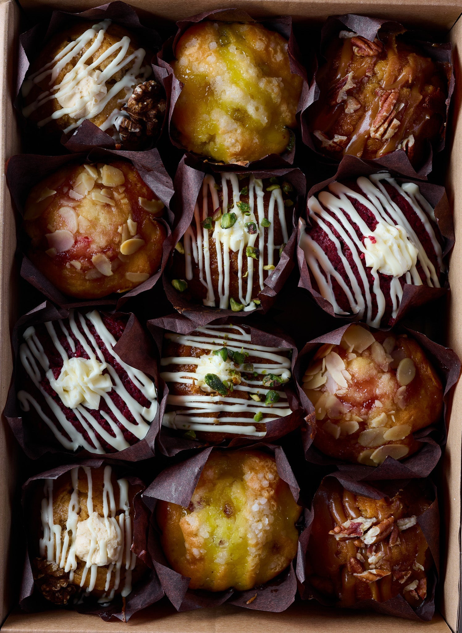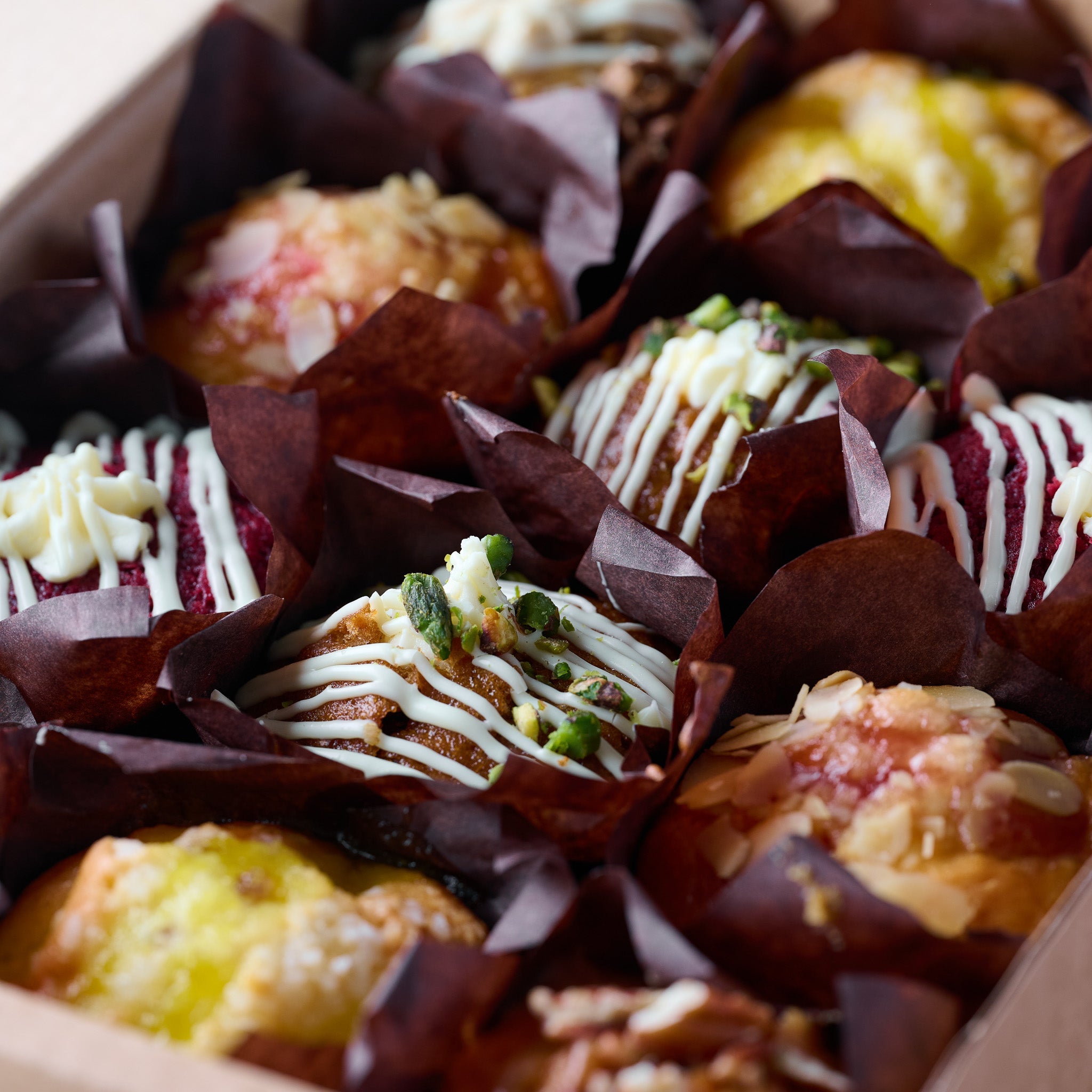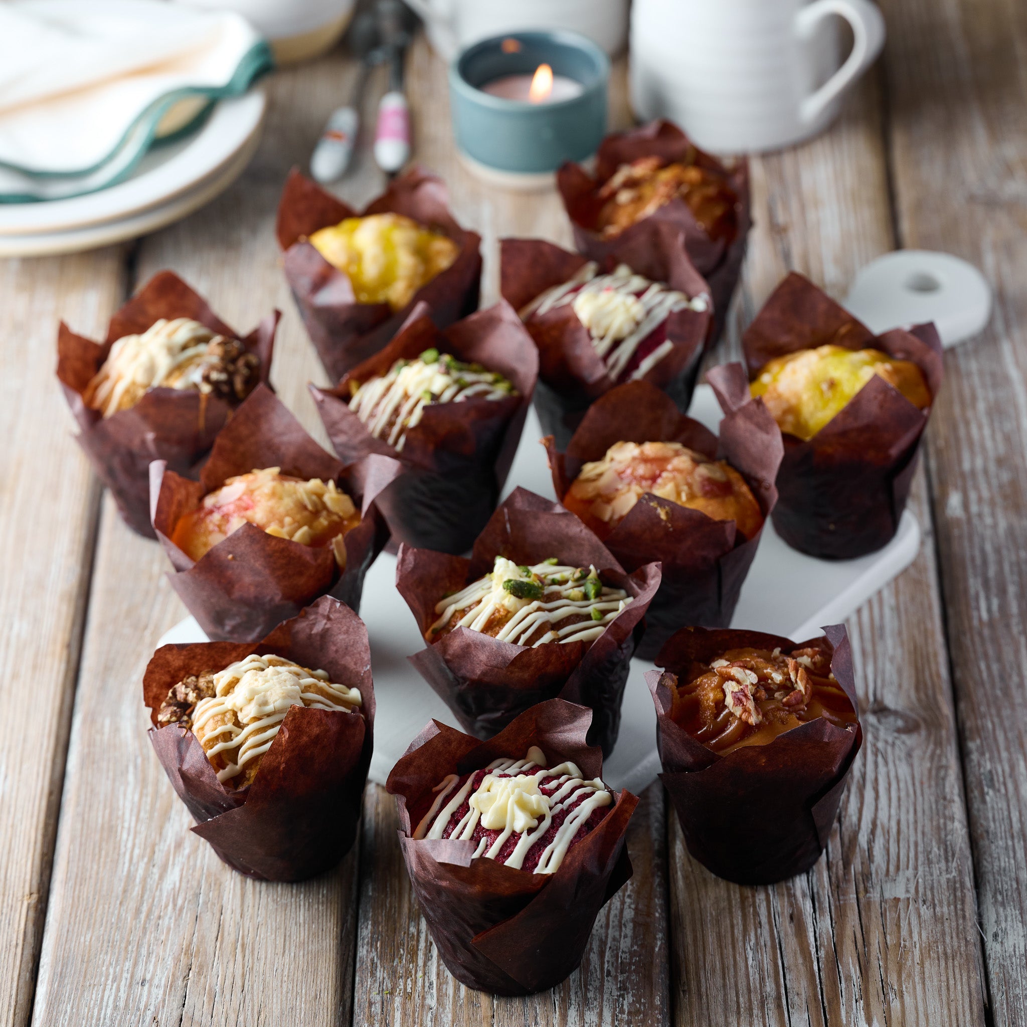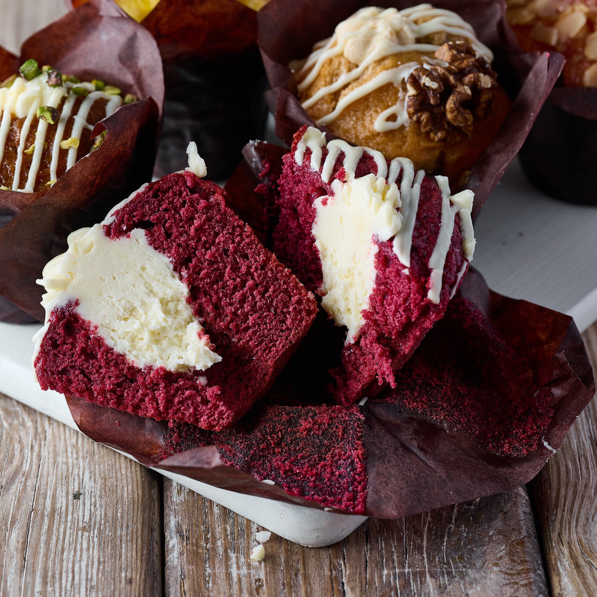Indulge in the ultimate muffin collection, featuring a handpicked selection of winter favourites. From rich Coffee & Walnut to fruity classics like Lemon & Blueberry and Red Velvet for the chocolate lovers!