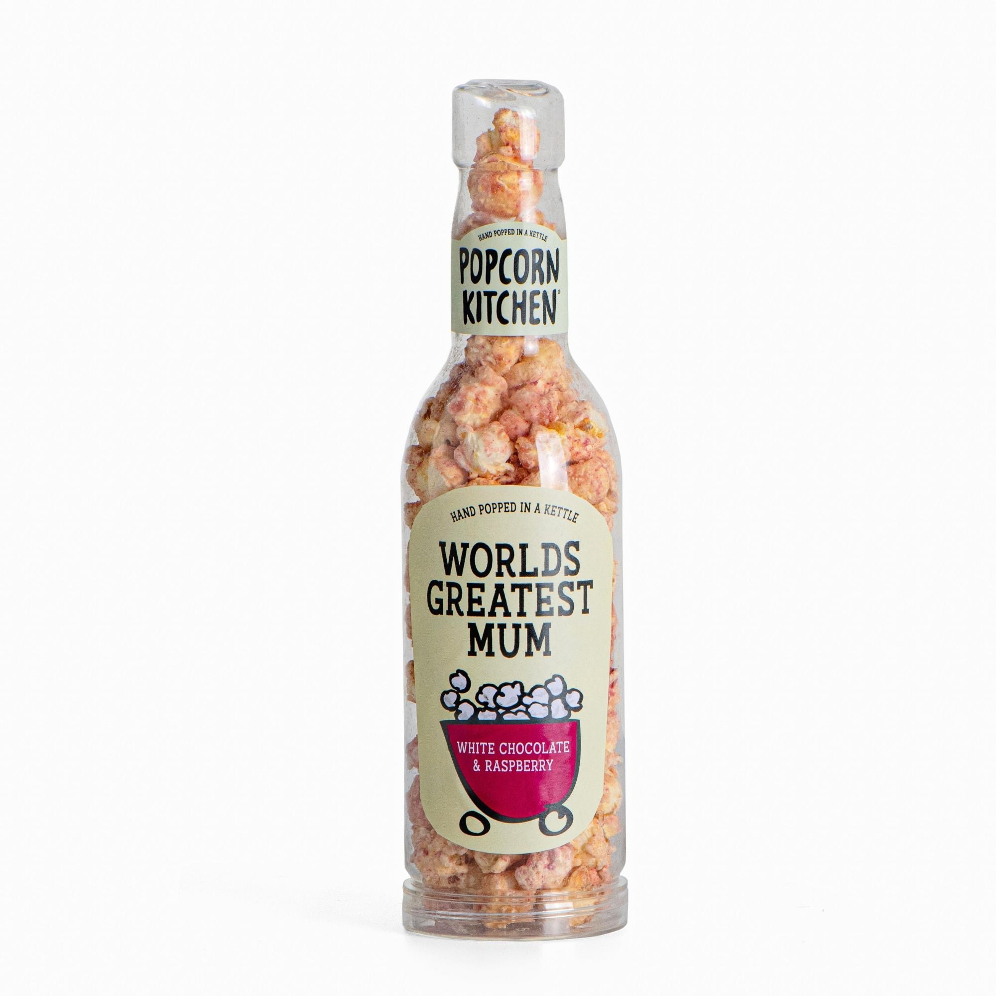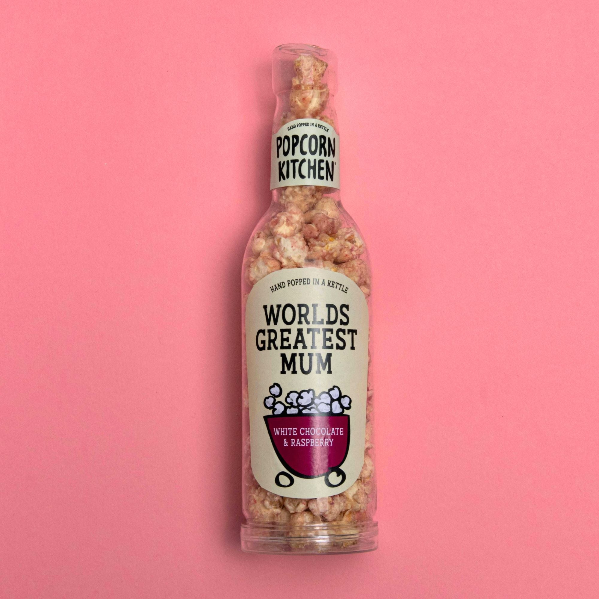 Show Mum just how much she means to you with the World’s Greatest Mum edition of our indulgent White Chocolate & Raspberry Popcorn treat! Our hand-popped gourmet popcorn is smothered in luxurious Belgian white chocolate and sprinkled with tangy freeze-dried raspberries, what a flavour combination!