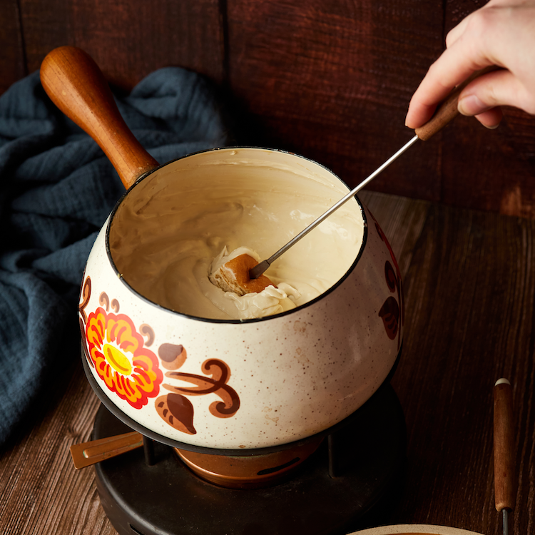 This fondue boasts a creamy, gooey texture, perfect for heating and dipping your favourite breads and crudités. Laced with a dry white wine and a moorish hit of garlic, it's a perfect treat to share with loved ones.